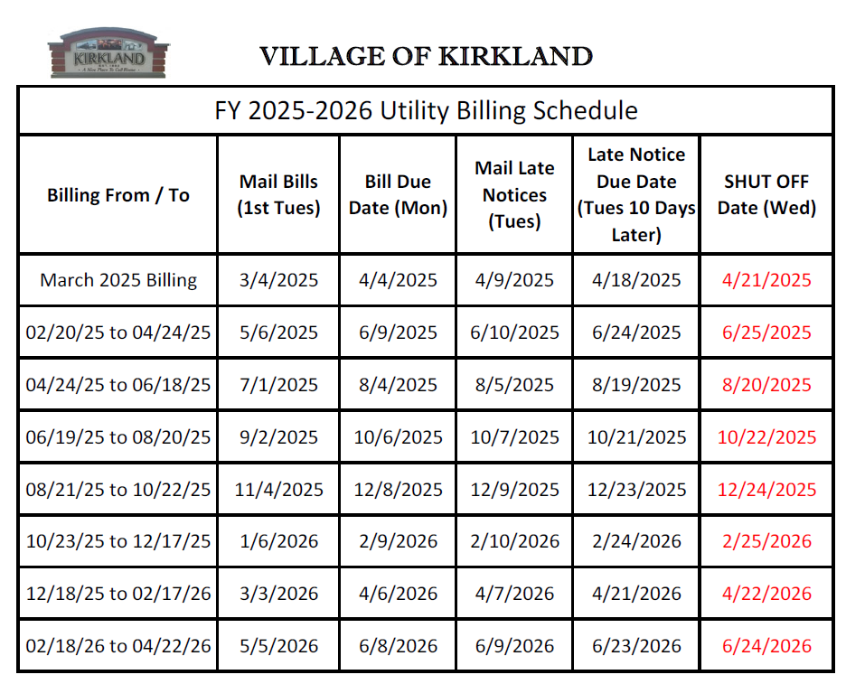 2025/2026 Utility Rates per Billing Cycle